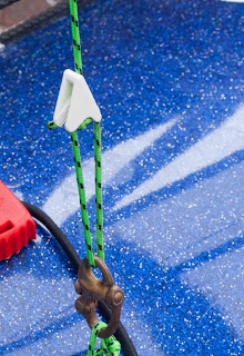 …and the uphaul/forestay pulley are both tied to the appropriate fitting with a small loop of spectra cord.
